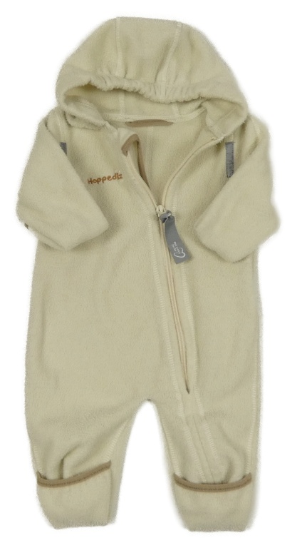 Smotanová fleecová kombinéza s nápisom a kapucňou