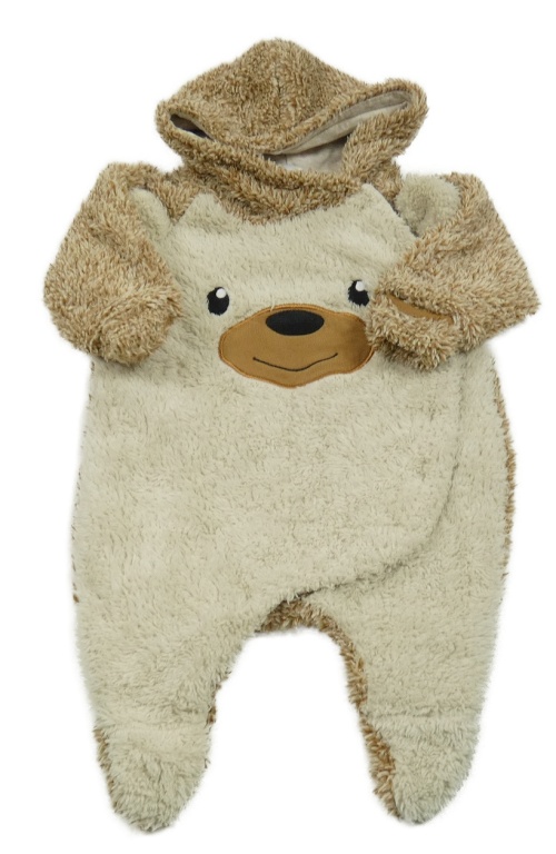 Béžovo-hnedá chlpatá podšitá kombinéza s medvěďom a kapucňou Dopodopo