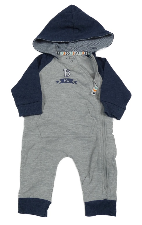 Sivo-tmavomodrá melírovaná tepláková kombinéza s písmenem a kapucňou Prénatal