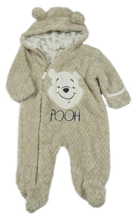 Béžová melírovaná chlpatá podšitá kombinéza s Púem a kapucňou Disney