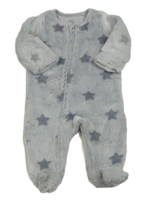 Sivo-biely melírovaný chlpatý overal s hviezdičkami F&F