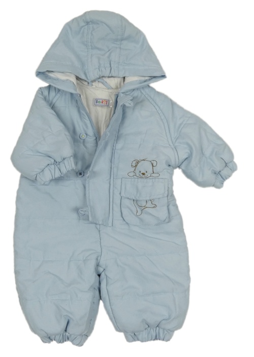 Svetlomodrá šušťáková zateplená kombinéza s medvěďom a kapucňou