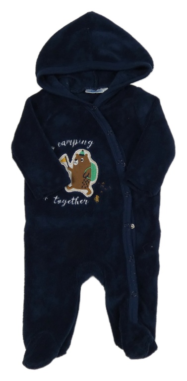 Tmavomodrá chlpatá kombinéza s medvedíkom a kapucňou So Cute