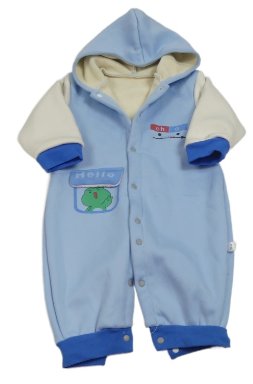 Modro-smotanová tepláková kombinéza s vtáčikom a kapucňou