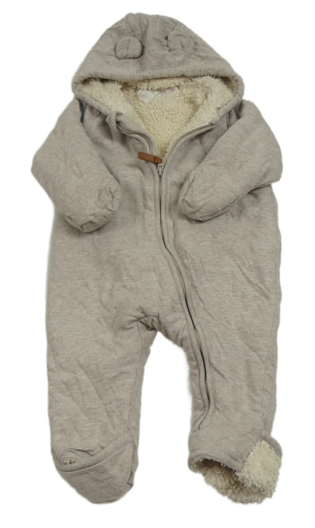 Béžová melírovaná tepláková zateplená kombinéza s kapucňou H&M