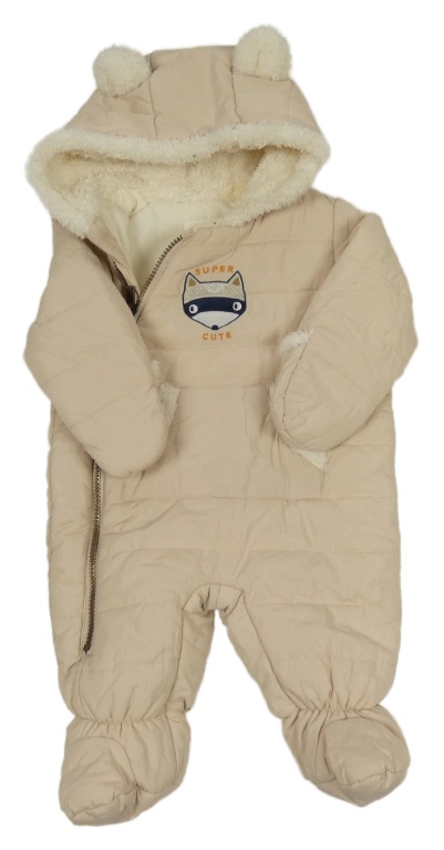 Smotanová šušťáková zimná kombinéza s líškou a kapucňou