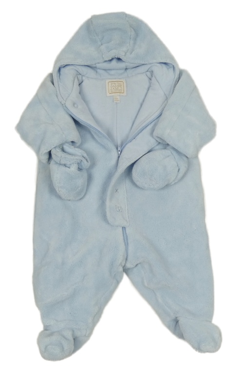 Svetlomodrá plyšová zateplená kombinéza s kapucí + rukavice