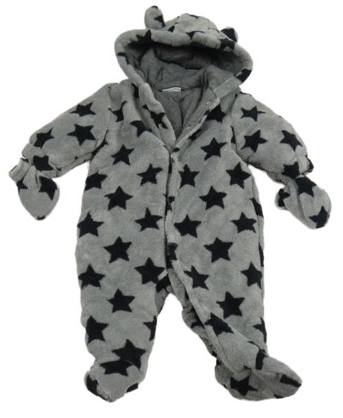 Sivo-čierna hviezdičkovaná plyšová zateplená kombinéza s kapucňou a odepínacími rukavicemi Next
