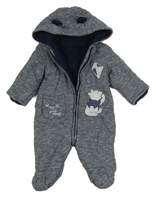 Tmavomodro-biela pruhovaná bavlnená zateplená kombinéza s medvídkem Pú a kapucňou George