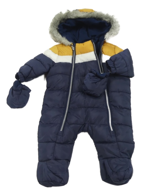 Tmavomodro-okrovo-biela šušťáková zimná kombinéza s kapucí + rukavice F&F