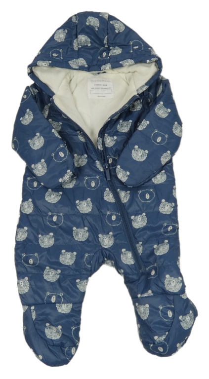 Tmavomodrá šušťáková zimná kombinéza s medvedíkmi a kapucňou Primark