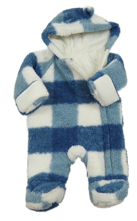 Tmavomodro-biela kockovaná huňatá zateplená kombinéza s kapucňou Tu