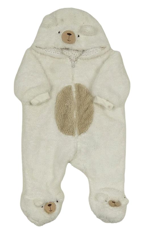 Biela chlpatá podšitá kombinéza s kapucí - medvěď F&F