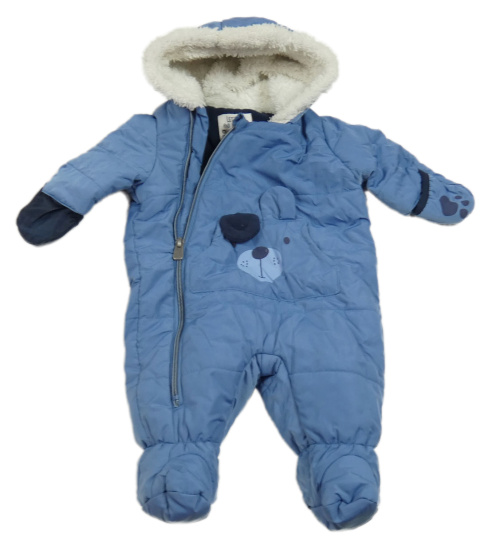 Modrá šušťáková zimná kombinéza s psíkom a kapucňou