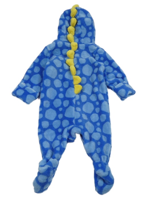 Modrá plyšová vzorovaná kombinéza s kapucňou so žlutými ostny - dino Mothercare