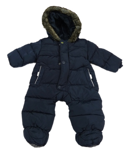 Tmavomodrá šušťáková zimná kombinéza s kapucňou s kožešinou Baker