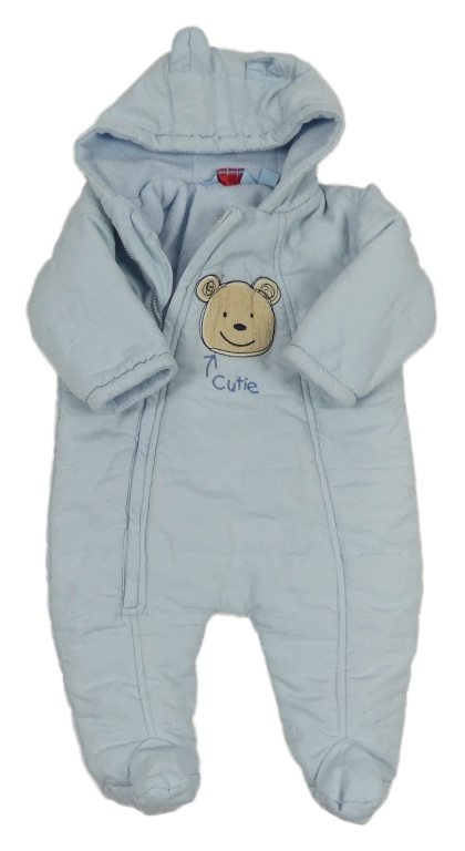 Svetlomodrá šušťáková zimná kombinéza s medvěďom a kapucňou