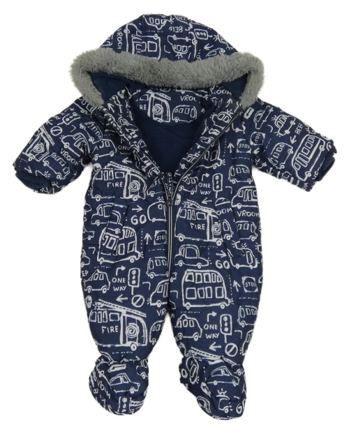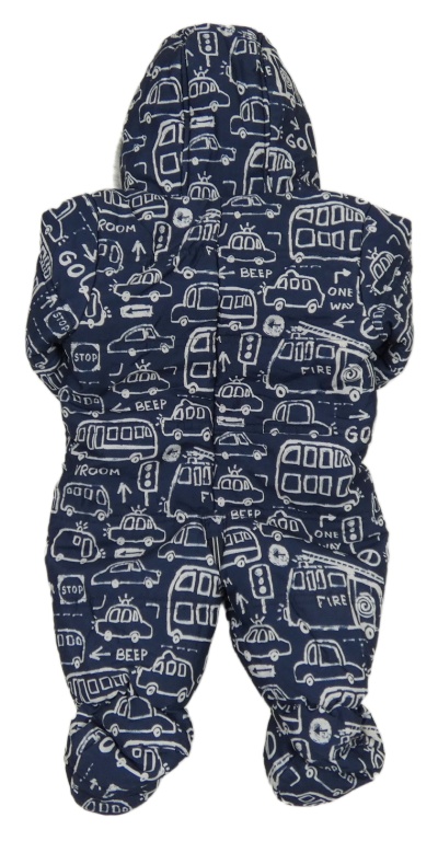 Tmavomodrá šušťáková zimná kombinéza s dopravními prostředky a kapucňou George