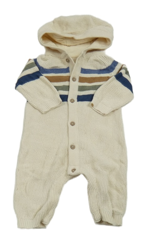 Krémová pletená kombinéza s pruhmi a kapucňou Tu