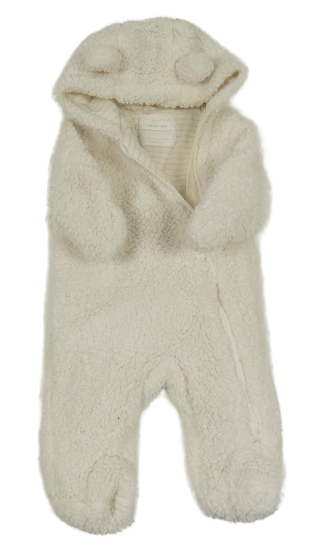 Biela huňatá podšitá kombinéza s kapucí + rukavice Primark