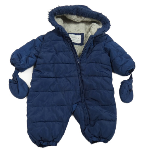 Tmavomodrá šušťáková zimná kombinéza s kapucí + rukavice M&S