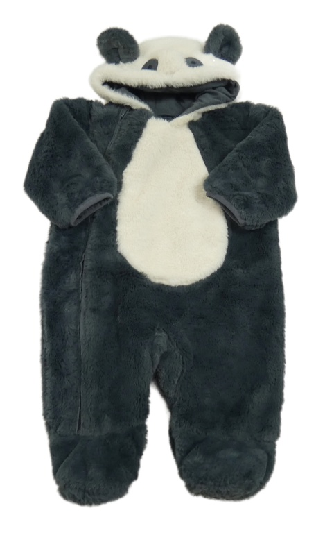 Antracitovo-smotanová kožušinová podšitá kombinéza s kapucí - panda M&S