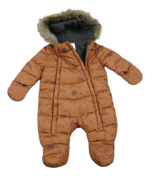 Hnedá šušťáková zimná kombinéza s ježkami a kapucňou Primark