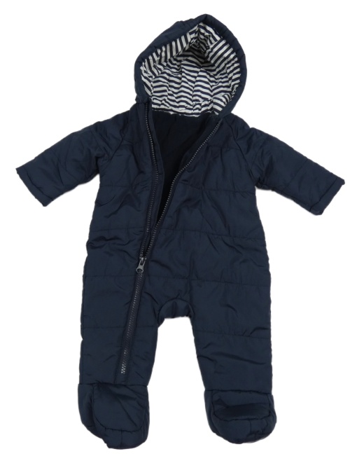 Tmavomodrá prešívaná šušťáková zateplená kombinéza s kapucňou Dunnes