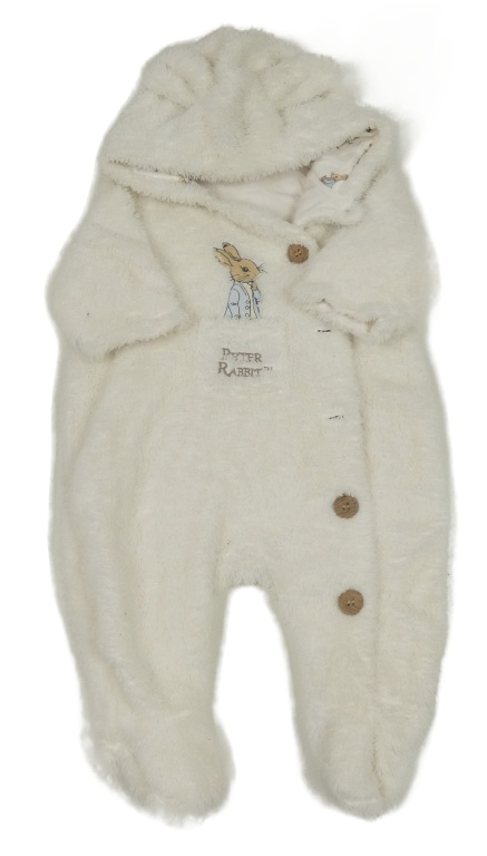 Biela chlpatá podšitá kombinéza s králikom a kapucňou TU