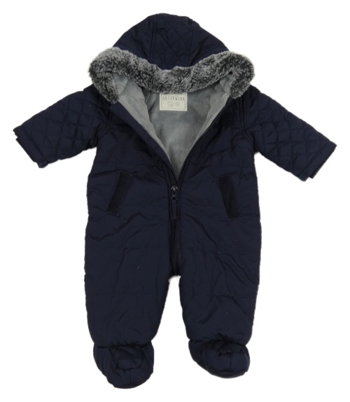 Tmavomodrá prešívaná šušťáková zimná kombinéza s kapucňou s kožešinou George