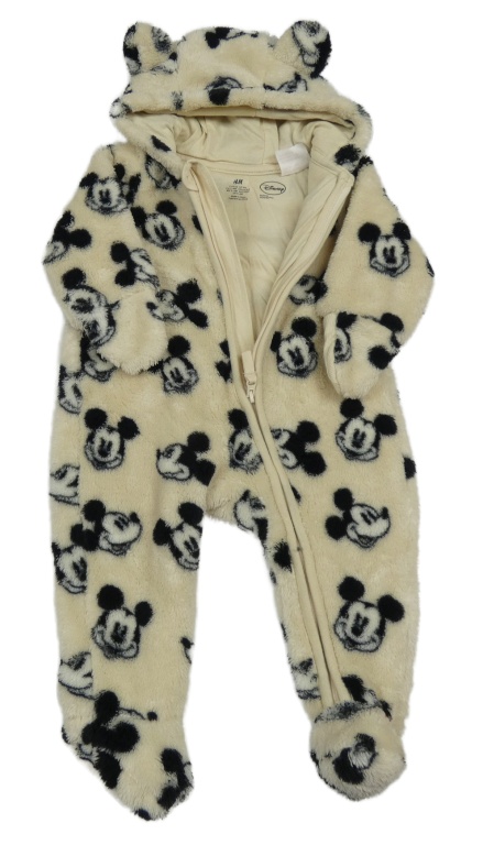 Smetanovo-čierna chlpatá podšitá kombinéza s Mickeym a kapucňou H&M