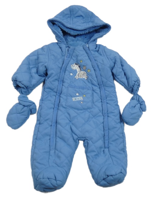 Modrá prešívaná šušťáková zateplená kombinéza so zebrou a kapucí + rukavice Matalan