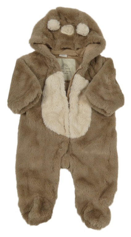 Hnedo-smotanová kožušinová podšitá kombinéza s kapucí - medvěď Next