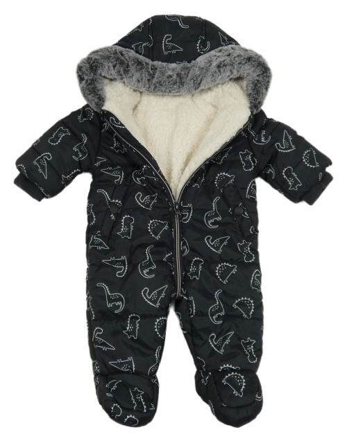 Čierna šušťáková zimná kombinéza s dinosaurami a kapucňou George