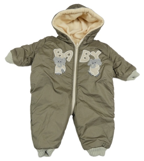 Hnedá šušťáková zimná kombinéza so slonmi a kapucňou