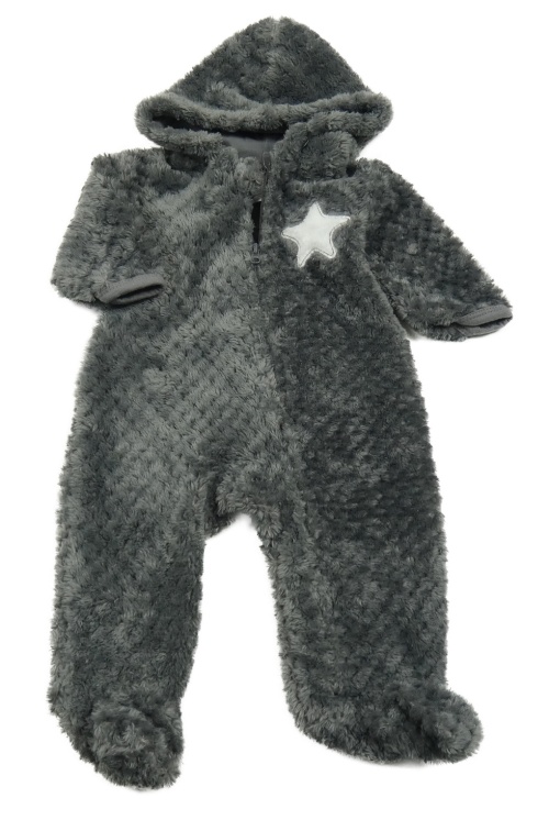 Tmavosivá chlpatá kombinéza s hviezdou a kapucňou