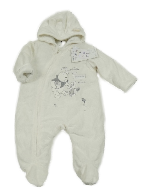 Nové - Biela chlpatá zateplená kombinéza s medvídkem Pú a kapucňou Disney