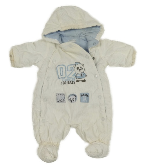 Biela zateplená menšestrová kombinéza s obrázkom a kapucňou