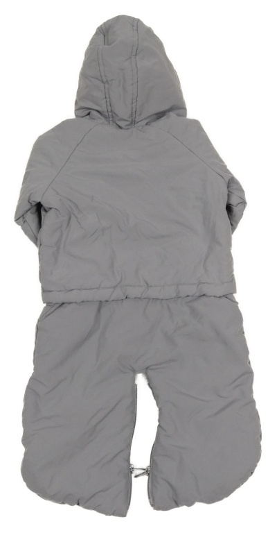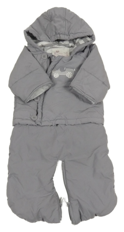 Sivá šušťáková zimná kombinéza s autíčkom a kapucňou Vertbaudet