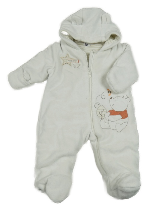 Biela fleecová zateplená kombinéza s medvídkem Pú a kapucňou Disney