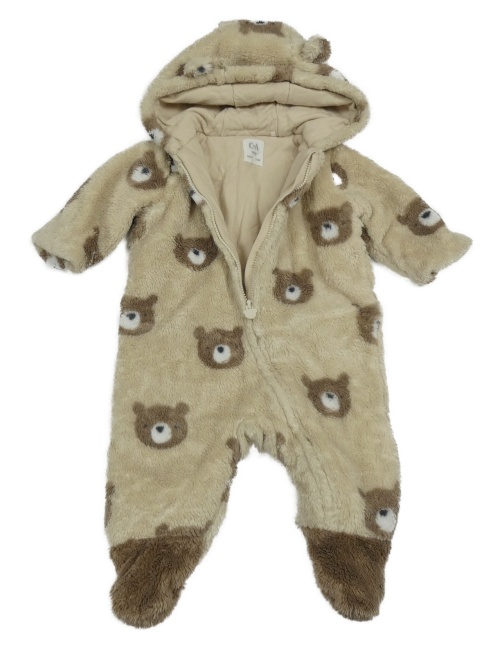 Béžová chlpatá zateplená kombinéza s medveďmi a kapucňou C&A