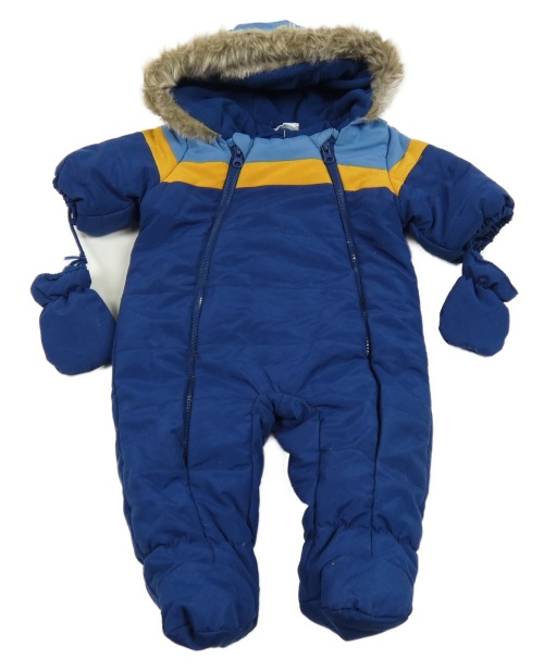 Tmavomodrá zimná kombinéza s pruhmi a rukavicemi Ergee