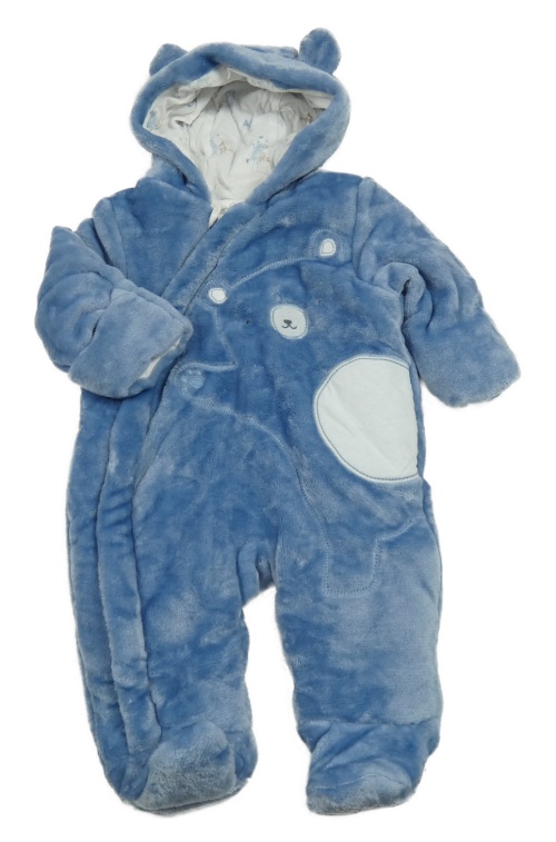 Svetlomodrá plyšová zateplená kombinéza s medvedíkom a kapucňou Mothercare