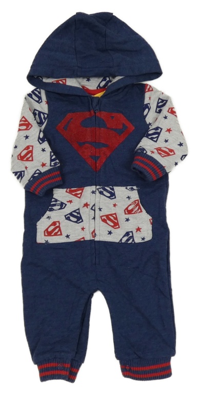 Tmavomodro-sivá tepláková kombinéza s logy Supermana a kapucňou F&F