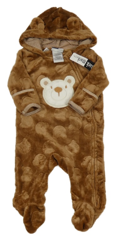 Nové - Hnedá chlpatá kombinéza s medveďmi a kapucňou MickMack