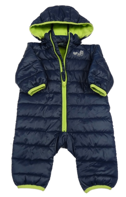 Tmavomodrá prešívaná šušťáková zimná kombinéza s líškou a odopínacíá kapucňou Mounta