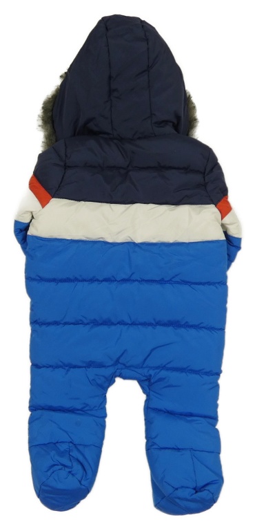 Modro-tmavomodro-biela šušťáková zimná kombinéza s kapucí + rukavice F&F