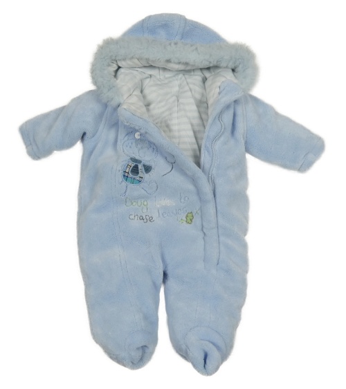 Svetlomodrá plyšová zateplená kombinéza s psíkom a kapucňou