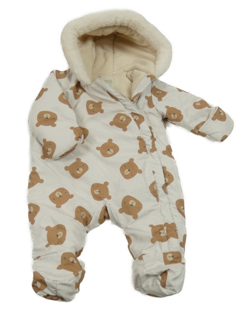 Svetlobéžová šušťáková zimná kombinéza s medvedíkmi a kapucňou Tu