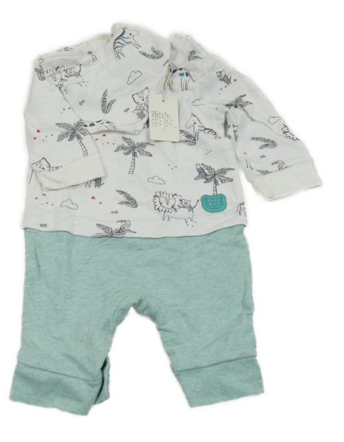 Nové - 2Set - Bielo-mentolová melírovaná kombinéza so zvieratkami a palmami + šátek/slinták Rocha John Rocha